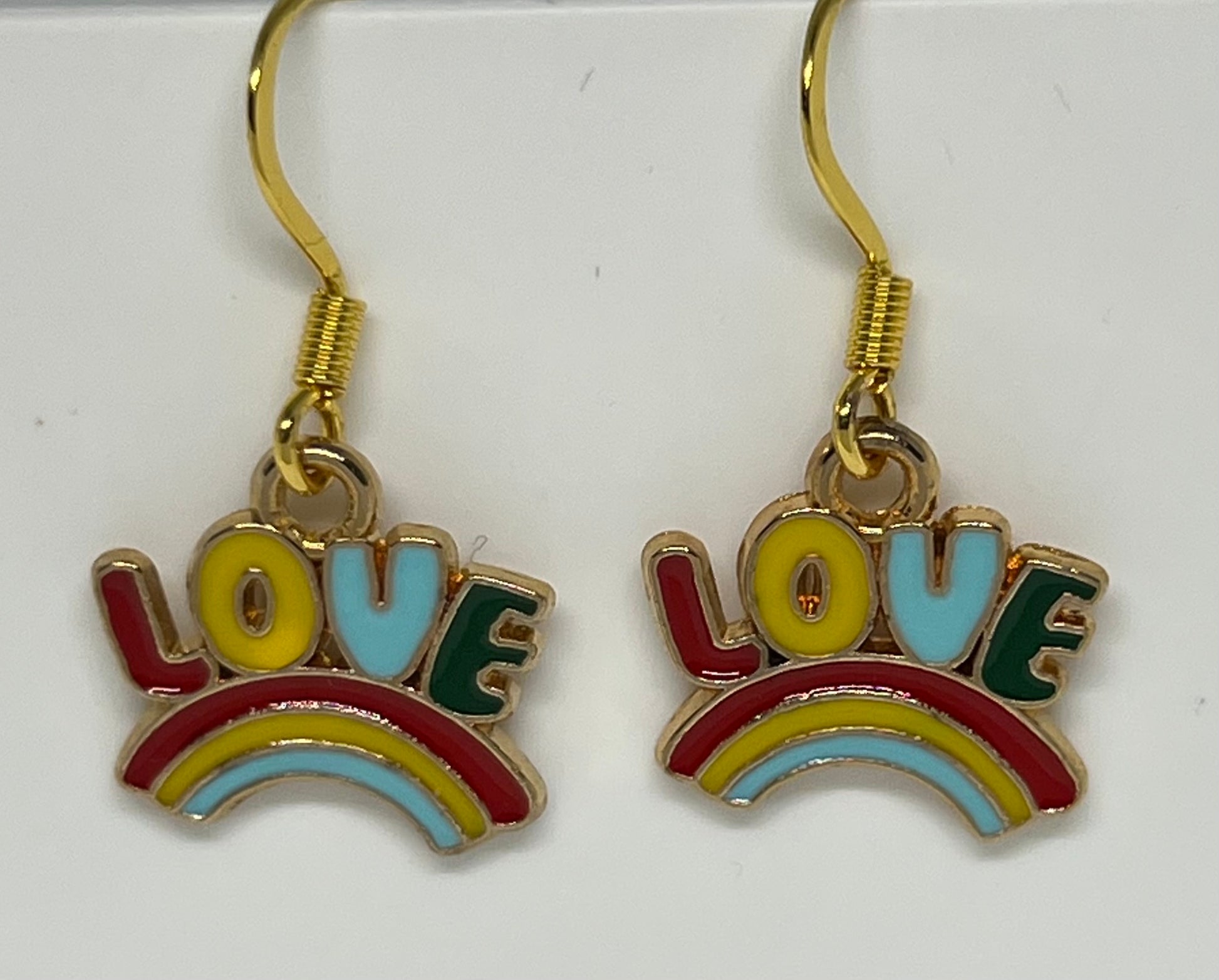 Featuring the word LOVE atop a rainbow, these earrings radiate warmth and positivity, making them perfect for spreading kindness wherever you go.
